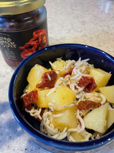 おすすめは、茹でたじゃがいも、しらす、カットしたドライトマトを和える!